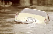 1975: A teenage brother and sister pack up their suitcases in the car while their father sends them away. Their mother watches tearfully from the doorstep. Their 8 year old sister watches as they speed away. The brother drives like a maniac and crashes into the river. The car sinks. The brother seems unconscious while the sister tries to get out of the car. (It can be speculated that they were not wearing seat belts in all likelihood so chances of either being conscious is poor.)
