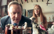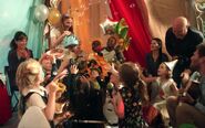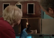 In the museum, Fiona Beauvoisin picks out a piece from the dollhouse on display. Her husband Alexander Beauvoisin walks up and makes a snide remark to her while his girlfriend, Holly Ackroyd watches. The children play with bubbles and the woman in the purple bird costume posts a flyer on the bulletin board.