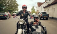 At Fleur's new house, Sarah tells her, "Oh, Fleur, it's just lovely! Looks like you're settled for a while now." John has gone inside for a beer. Winter, who is grilling, says "He's been gone quite a while, actually." Fleur says, "No man can resist the siren call." Betty is playing with Fleur's dollhouse. Betty says, "Look, Mummy!" Sarah goes and looks and sees a doll in a bathtub full of red water. Sarah says, "Oh. The dolly must have got one of those strawberry bubble baths like you've got. Heh. Let's get you a drink." They hear a motor running. Out in the driveway, Barnaby is in the sidecar of the motorcycle with Paddy. Barnaby says, "This is the only way to travel. Why did nobody tell me?!" Sarah tells him, "You are too old for a midlife crisis." Barnaby says, "I'm only human!" Fleur says, "Nobody's perfect! Are they Paddy? Off we go! Whoo-hoo-hoo-hoo! Whoo! Whoo-oo-oo! Whoo!" and Fleur drives off with Barnaby and Paddy.